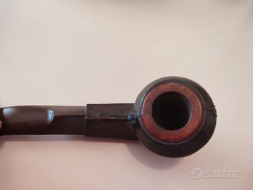 Bellissima Pipa Savinelli 623 in legno pregiato con rivestimento in vera pelle logata dal noto marchio Etienne Aigner. Rara e preziosa.