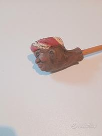 Il fornello in argilla di colore marrone scuro, raffigura la testa di un Arabo o come dicono in Sicilia, testa di Turco, dai tratti somatici tipici. Occhi di colore bianco e nero, Sul capo un turbante decorato con fasce di rosso e bianco intervallate e striature ornamentali. La sommità del turbante fa da bocca del fornello di forma leggermente ovale.