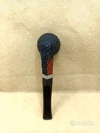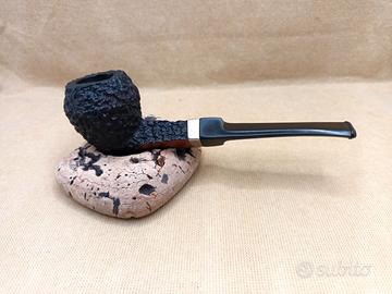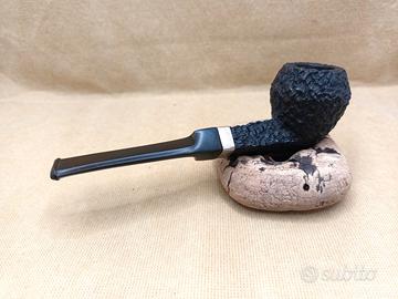 rara ed elegante pipa da collezione fine anni 70, realizzata con grande perizia in radica fiammata sabbiata, inciso : TWIST BRUYERE, punzoni inglesi sull'anello in argento sterling, pregiata manifattura Inglese di alta qualità, modello APPLE con bocchino a sella originale, pipa usata, fumata ,ben conservata e curata, dimensioni: lunghezza mm.142 circa, diametro fornello mm.18 circa, profondità fornello mm.35,5 circa, altezza esterna fornello mm.44,7 circa, peso gr.31 circa, condizioni ottime come da foto, possibili minime imperfezioni e difetti, spedizione tracciabile.