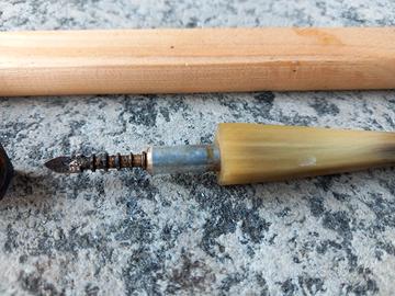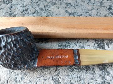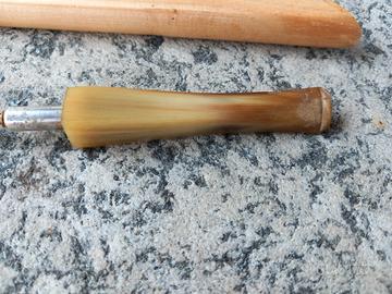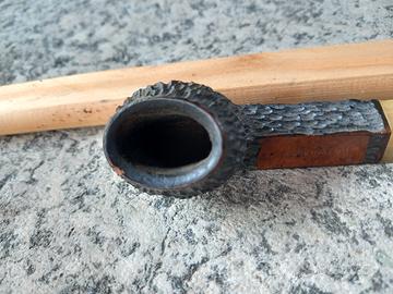 fornello ovale radica e corno, usata, piccola sbeccatura sul becchino e segni di usura