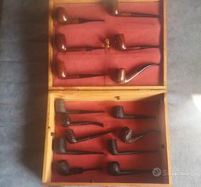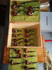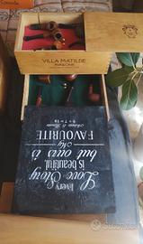 Cassette porta vino in legno modificate per portapipe o orologi, a più piani., rivestite in stoffa, raso, velluto, Da 20 euro