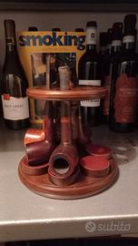 Un bellissimo porta pipe espositore in legno + 5 Pipe usate: