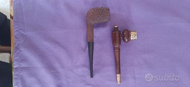 Buongiorno, vendo due pipe vintage, usate ma in buono stato, quella con motivi in metallo d'orato, non ha brand, mentre l'altra, è una Lincoln 003, grazie per l'attenzione.