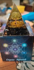 Piramide orgonite con simbolo albero vita foglie giada verde e pietre sul fondo tormalina nera proprietà ottime:La tormalina nera assieme all'Orgonite specialmente la nera hanno la capacità di allontanare o riflettere le negatività, schermando da energie indesiderate.Protegge dalle aggressioni dell'ambiente circostante dalle vibrazioni negative, La giada verde ha proprietà riequilibranti, calmanti e purificanti, legate principalmente al chakra del cuore (Anahata).Si ritiene che aiuti a eliminare pensieri negativi e paure.estetica molto bella con confezione sua.Orgonite pyramid with tree of life symbol, leaves green jade and black tourmaline stones at the bottom Excellent properties: Black tourmaline, along with orgonite, especially black, has the ability to ward off or reflect negativity, shielding unwanted energies. It protects from environmental aggression and negative vibrations. Green jade has rebalancing, calming, and purifying properties, mainly linked to the heart chakra (Anahata). It is believed to help eliminate negative thoughts and fears. Very beautiful aesthetic with its own packaging.