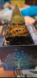 Piramide orgonite simbolo albero vita foglie giada