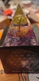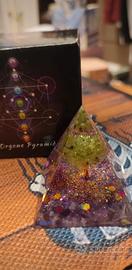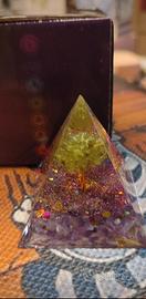 Piramide orgonite simbolo sacro Albero della vita:rappresenta la vita in tutte le sue forme, collegando cieloe terra, e simboleggia nascita, crescita, rinnovamento, immortalità e interconnessione foglie giada verde,pietre Ametista viola proprietà benefiche ottime:La giada verde è una pietra di armonia, prosperità e guarigione,proprietà calmanti, che dissipano negatività e paura.L'ametista è una pietra associata a calma, saggezza e spiritualità, nota per le sue proprietà calmanti che aiutano a ridurre stress, ansia, insonnia e mal di testa, favorendo il rilassamento inoltre I'Orgonite protegge l'ambiente dalle onde elettromagnetiche dei vari dispositivi.scaglie dorate estetica stupenda con confezione.Orgonite pyramid sacred symbol Tree of Life : represents life in all its forms, connecting heaven and earth, and symbolizes birth, growth, renewal, immortality, and interconnection. Green jade leaves, stones Purple amethyst excellent beneficial properties: Green jade is a stone of harmony, prosperity, and healing, with calming properties that dispel negativity and fear. Amethyst is a stone associated with calm, wisdom, and spirituality, known for its calming properties that help reduce stress, anxiety, insomnia, and headaches, promoting relaxation. Orgonite also protects the environment from electromagnetic waves from various devices. Golden flakes, stunning aesthetics, with packaging.