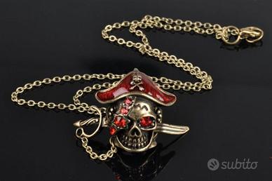 Collana Pirati dei Caraibi Misura ciondolo : 4 cm x 3 cm ( composto di una spada e il teschio) Collana lunga circa 50 cm Articolo completamente nuovo