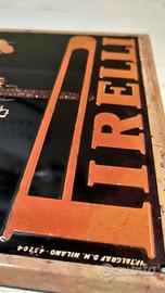 Targa Pubblicitaria da collezione in Metallo/Latta, disegnata da Plinio Codognato per Pirelli, nel 1916. “Un bel bambino in bicicletta, con le gambe larghe e il volto sorridente che pareva scendere per una china venendo incontro a chi lo osservava”. L’Italia è appena entrata in guerra e i colori del vestito del bambino sono quelli della bandiera nazionale.