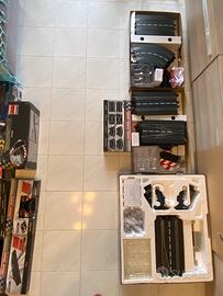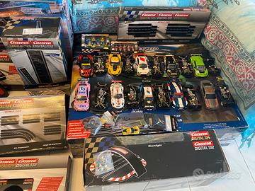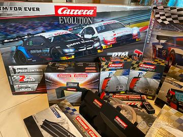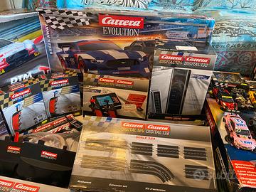 Vendo pista CARRERA da 27 metri e mezzo, composta da DIGITAL Pure speed, Evolution DTM ed Evolution Break Away, 2 espansioni con rettilinei e curve DIGITAL e 2 espansioni Evolution. Il tutto può essere comandato con il rettilineo DIGITAL avendo la possibilità di usare tutte le capacità del DIGITAL e di espandere il tracciato a piacimento. Sono presenti 6 comandi a filo e 4 wireless con relativo modulo esterno per collegarne fino ad 8; 2 comandi extra a filo come parti di ricambio, doppia basetta di ricarica per comandi wireless. -1 lap counter per visualizzare best lap, last lap, differenza best lap, giri, posizione, tempo di gioco per 8 piloti -Rettilineo per pit stop -driver display per verificare consumi prestazioni e carburante residuo -un ponte partenze con luci e suoni -un secondo ponte per intermedi -torre con display per mostrare le posizioni fino a 8 auto. -1 kit commissari di gara- -1 kit grid girls -2 kit ruote nuove -2 kit spazzole nuove -3 kit guard rail -1 kit rialzo curve 10 auto presenti, 8 Digital funzionanti, 1 Evolution funzionante(Pace car, da poter far uscire a piacimento in caso di incidenti) e 1 senza motore. Vendo per cambio hobby non per necessità, no a furbi, affaristi o “mi cugggino”, la consegna è solo a mano visto il peso e le dimensioni del lotto, grazie