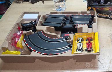Vendo pista Formula 1 della Carrera con Ferrari e Mercedes come in foto della lunghezza di 5.3 metri completamente personalizzabile, originale e funzionante con regolare scontrino e garanzia. il modello come già detto è personalizzabile a piacimento con curve e tornanti con anche giro a 360 gradi sotto sopra. Per info contatti via chat di subito.