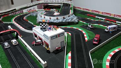 Vendo pista Ninco completa di plastico realizzato tutto a mano. La pista sviluppa circa 20 metri lineari. Il plastico misura 3 metri x 2 metri. È completo di telaio con ruote per poter spostarlo. Al momento il plastico è stato diviso in due parti e posto verticalmente e il telaio smontato per problemi di spazio, ma si può ricomporre tutto facilmente. La pista è dotata di alimentatore regolabile.