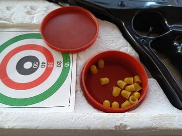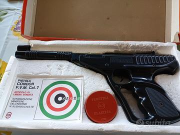 Pistola ad aria compressa Condor Mirage calibro 7 anni '70. Completa di scatola originale e pallini nella loro scatoletta anch'essa originale. Tenuta veramente bene, a parte la scatola che presenta alcuni difetti data anche la sua età ma ancora in buono stato.