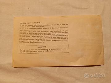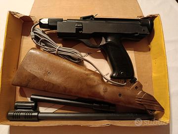 Pistola Fucile Elettronico Vintage RP-007 per TV Game Raro set vintage "Electronic Rifle/Pistol TV Sports" modello RP-007, pezzo di storia del gaming anni '70/'80 prodotto a Hong Kong. Accessorio modulare utilizzabile sia come pistola che come fucile grazie al calcio e alla canna removibili. Ideale per console pong-style o collezionismo retrogaming. 🕹️ Modello: RP-007 Electronic Rifle/Pistol. 📦 Contenuto: Unità centrale, calcio finto legno, prolunghe canna, manuale originale e foglio tecnico. 🛠️ Condizioni: Esteticamente ottimo. Scatola originale presente con segni del tempo (vedi foto). 💡 Info: Funziona con sensore ottico su schermi CRT (tubo catodico).