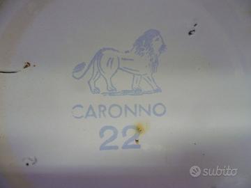 Vendo vecchio pitale, vaso da notte, prodotto in ferro smaltato colore bianco, con profilo colore blu, marchiato CARONNO 22, periodo anni 50/60, misura cm. 22 x 11, in buone condizioni, presenta segni dell'uso e del tempo.