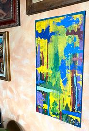 40 cm per 80 centimetri, tela dipinta a mano colori vivi astratto moderno, dipinto spatola tecnica mista per un'idea da appendere in casa in un bar in ufficio o locale pubblico.