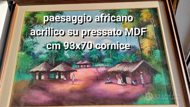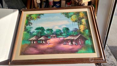 PITTURA ETNICA AFRICANA VINTAGE DI GRANDI DIMENSIONI CON IMPORTANTE CORNICE E VETRO.