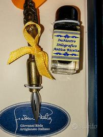 Piuma con pennino e inchiostro nero in confezione originale nuovo