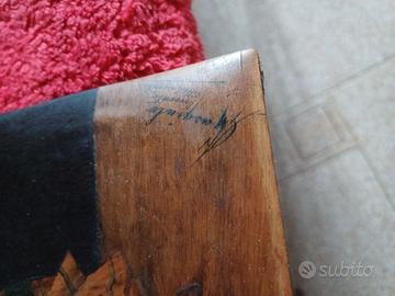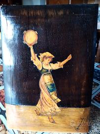 antica placca intarsiata con una ballerina nel tipico vestito della tarantella sorrentina di cm.15 x cm.20.la placca e firmata GARGIULO villa gargiulo.