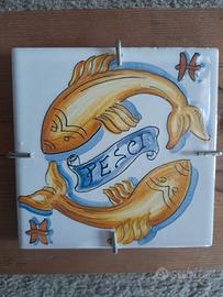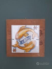 Questo quadretto raffigurante il segno zodiacale dei Pesci , si tratta di un oggetto artigianale ed è stato dipinto a mano.