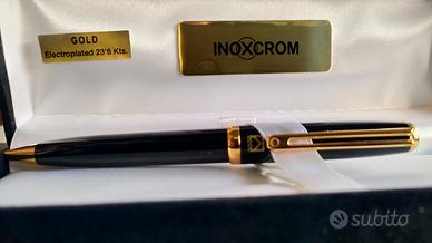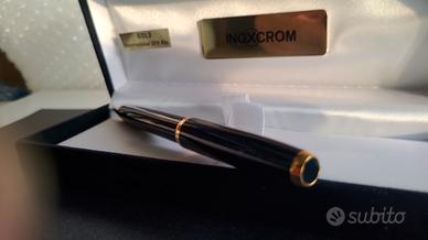 penna roller inoxkrome di centimetri 14 per centimetri 1 in resina speciale e rifiniture placcate in oro da 23,6 carati La penna è funzionante Ed è carica oltre che perfettamente conservata come se fosse nuova