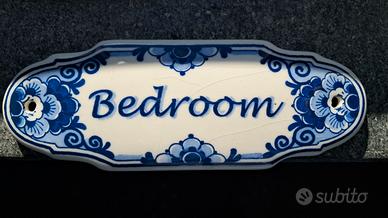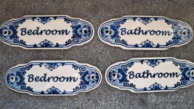 Nr. 4 placche da porta (2 Bedroom e 2 Bathroom) come da foto in ceramica Delft Blue.