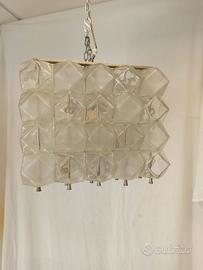 Plafoniera in acciaio e cristallo anni '60 Silvem Voghera Misure Altezza 26 Lati 29 x 29.