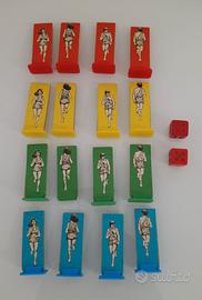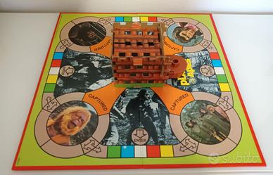 Il gioco - ispirato al celebre film Il pianeta delle scimmie - risalente a 50 anni fa, mostra i segni del tempo e dell'uso. La confezione esterna non presenta un buono stato di conservazione: abrasioni e piccole rotture. Sul coperchio segnalo - su 2 angoli e su uno dei lati lunghi - la presenza di nastro adesivo trasparente. Nastro adesivo trasparente anche in due angoli del fondo bianco della confezione. L'interno è in buone condizioni. Il tabellone si presenta ottimamente, senza rotture e senza interventi di restauro. Piccole rotture della gabbia in cartone non ne compromettono la stabilità e la costruzione. Il dispositivo in plastica marrone che aziona l'apertura della gabbia è completo. Segnalo che la linguetta rettangolare ha un fermo uncinato spezzato. Nonostante sia completo, non sono riuscito a farlo funzionare (ho letto online che originariamente avrebbe dovuto esserci un piccolo pezzo di spugna, andato perduto o seccatosi col tempo). Non potendo affermare con certezza che il dispositivo apri-gabbia sia funzionante o in qualche modo riparabile lo descrivo e lo segnalo come NON funzionante. Segnalo inoltre la mancanza di un piedistallo verde di una pedina, sostituito con un piedistallo grigio prelevato da un altro gioco. Regole del gioco in inglese stampate sul retro del coperchio. Allego stampa in A4 con la traduzione delle regole in italiano. Completano il gioco 2 dadi e le 16 pedine in quattro colori diversi. Le fotografie pubblicate, scattate personalmente, sono parte integrante della descrizione.