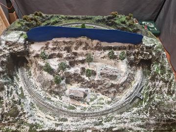 VENDO PLASTICO FERROVIARIO NUOVO IN SCALA N MSURE CM 74 X 68 PAESAGGIO ESTATE -INVERNO . TELAIO E SAGOME IN LEGNO .