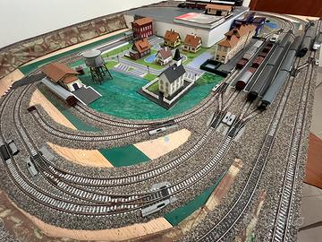 Plastico da completare ovviamente ma con deviatoi elettricamente e perfettamente funzionanti. Rotabili non compresi. Misure 250x150 altezza 82. Solo consegna a mano. Luca 3387167414