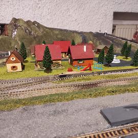 Vendo plastico ferroviario scala N, misure cm200*105, da rifinire, come da foto. Il circuito è stato testato ed è funzionante, alcuni parti sono da revisionare. Binari Fleischmann con massicciata, eccetto alcuni sostituiti per renderlo operativo. La piattaforma girevole è funzionante. Gli scambi sono quasi tutti elettrici e funzionanti, alcuni sono manuali, ma non sono collegati per funzionare dalle pulsantiere, quindi sono azionabili a mano.