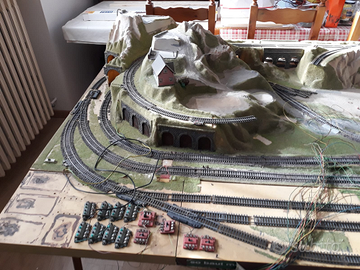 PLASTICO TRENO 125 CM PER 250 CM DA TERMINARE MA CON QUASI TUTTI I COLLEGAMENTI VIA FILO ELETTRICO SOTTO LA BASE COMPLETATI DA RICONTROLLARE 400