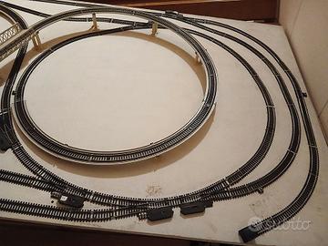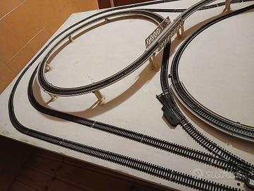 Vendo Plastico ferroviario scala HO montato su piano rigido 210x110; 1 linea sopraelevata e 2 linee piane ideale per il movimento di 3 convogli contemporaneamente. 6 scambi elettrici ottimo come base di partenza.
