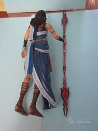 La figura riproduce fedelmente il suo design originale: il costume nero, i dettagli dorati sul corpetto, il mantello fluttuante rimandano all’estetica del videogioco.
