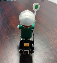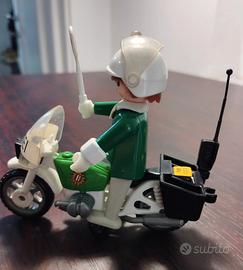 Playmobil anni '80: poliziotto tedesco in moto e pilota Go Kart. Moto mancante di manubrio