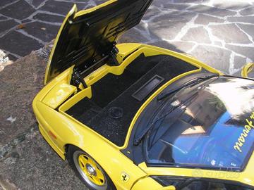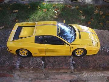 Ferrari Testarossa Pocher 1/8 gialla (2) Scuderia rarissima Vendo Ferrari Testarossa Pocher 1/8 gialla Scuderia rarissima. Il modello è perfetto in tutto. Il modello è stato riverniciato in carrozzeria con colore originale Ferrari, così come anche le basi nere del modello (sia la base anteriore che quella centrale), mentre il motore è stato migliorato con parti pittate che riproducono i colori dei vari elementi del motore in maniera più realistica. Il cofano posteriore non ha le scritte "Ferrari" e "Testarossa", poiché i piccoli fori dove le stesse vanno inserite sono stati stuccati e pittati in giallo. Lungo il modello, sui cofani anteriore e posteriore e sul tettuccio, come tutte le auto scuderia, è stata aggiunta una striscia dei colori della bandiera italiana e la scritta in giallo "Scuderia Ferrari" sul parabrezza anteriore. Modello unico Per qualsiasi cosa contattatemi senza problemi. Vendo moltissimi altri modelli in scala 1/18 ed 1/8. (WhatsApp) 339/1312834