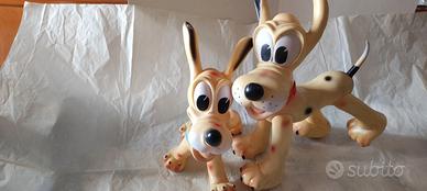 Pluto (con fratellino) ottimamente conservati. Prodotto da Ledraplasi per Walt Disney Production nel 1962 (vedi particolare in foto) Pluto ha testa e zampe mobili mentre il fratellino muove solo la testa. Particolare interessante è che se leggemente pressati emettono suono, cosa molto rara e non scontata in questi oggetti (secondo esperti sono un alore aggiunto)
