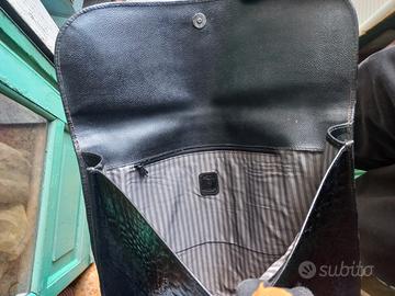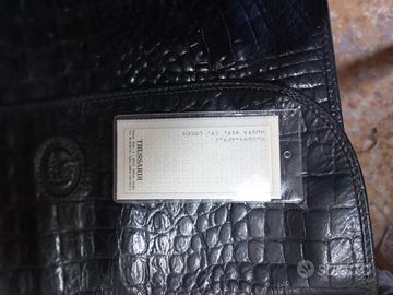 Pochette Trussardi in pelle nera con stampa effetto coccodrillo, vintange, originale con certificato di autenticità. misura 28x38 cm.