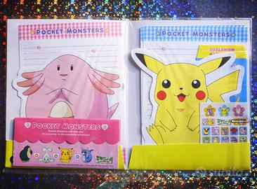 DUE SET di CARTA DA LETTERE con MINI ADESIVI, autentico e originale VINTAGE da collezione 1999 dei POCKET MONSTERS i futuri POKEMON.
