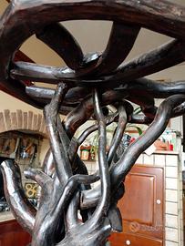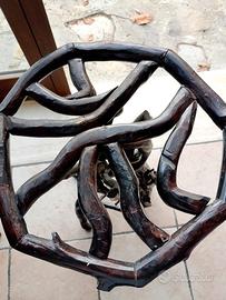 Vendo particolare oggetto in legno fatto artigianalmente, adatto da riporre in vari ambienti della casa, come comodino,porta piante, porta carta o saponi in bagno, per appoggiare soprammobili. Usato ma ben tenuto. È fatto in legno intrecciato e la parte sopra è piana e larga 38 cm. Si presta per poter appoggiare comodamente gli oggetti , è alto 66 cm.