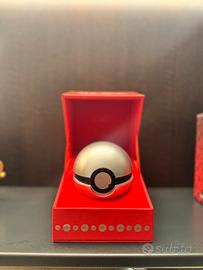 Poké Ball versione argento custodita in un cofanetto in similpelle con rivestimento interno in velluto rosso.