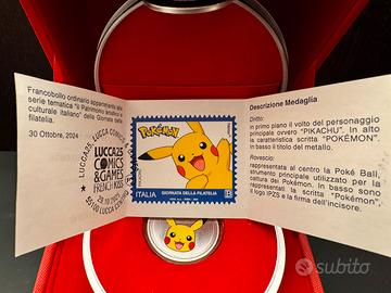 1 medaglia raffigurante Pikachu in argento 925‰, peso 18 grammi, diametro 32 millimetri