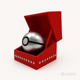 Poké Ball versione argento custodita in un cofanetto in similpelle con rivestimento interno in velluto rosso.