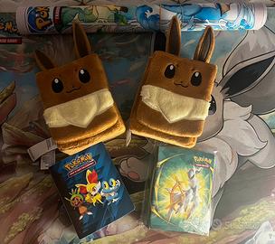 Vendo carte Pokemon set comune completo del 25esimo anniversario piu 8 pacchetti di sleevee originali piu 2 porta mazzi eevee e 2 mini raccoglitori tutto in PERFETTE condizioni.