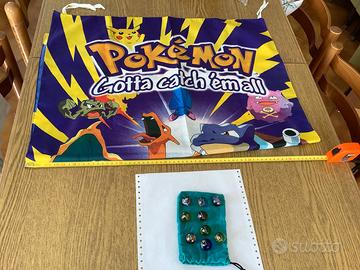 9 biglie Pokémon + poster in tessuto perfettamente integro con laccetti per appenderlo.