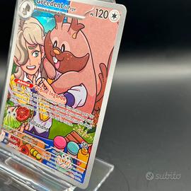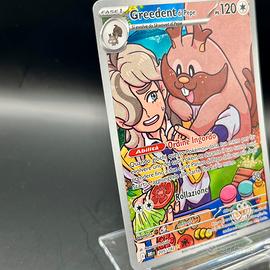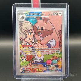 Pokemon Card: Greedent di Pepe (DRI 205) Rivali Predestinati 🇮🇹 * Edizione: Scarlatto e Violetto 🇮🇹 * Set: Rivali Predestinati 🇮🇹 * Rarità: Illustration Rare (⭐️) * Finitura Olografica: Full Art * Artista: Natsumi Yoshida * Condizione: Near Mint (NM) o migliore * Tag: #greedent #pepe #arven #illustrationrare #pokemon #card #paldea #scarlattoevioletto #fullart Carta perfetta per collezionisti in cerca di qualità, conservata sempre in bustina protettiva e catalogata nel raccoglitore; nessun graffio, piega o segno visibile. * Immagini reali: Disponibili fronte-retro nell'annuncio per massima trasparenza. * Imballaggio professionale e spedizione sicura, la carta sarà spedita con bustina protettiva e toploader come da foto, in caso di più carte sarà usato un toploader per ogni tre carte, per garantirne l'integrità. Spedizione tracciata in Italia e all'estero. * Garanzia di affidabilità: Video della carta registrato prima della spedizione, a tutela delle condizioni e della vostra tranquillità. * Venditrice seria 5 stelle, riconosciuta nel settore, d Venditrice seria 5 stelle, riconosciuta nel settore, determinata a mantenermi tale. * Nota sugli eventuali difetti: Consultare le immagini oppure chiedere informazioni aggiuntive, garantisco massima disponibilità e trasparenza. NB: Ho molte altre carte disponibili 🇯🇵 🇮🇹🇬🇧 ! Crea il tuo set personalizzato e scrivimi in privato 👍🏻