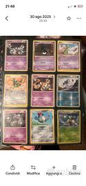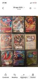 Prezzi con più carte diversi da quello descritti le carte sono maggioranza NM come da foto M Charizard EX (Blu/Secret) 107/106: €250+ (Il re della collezione) 2.Dragonite V (JP Alt Art) 074/067: €150 3.Charizard ex (SIR) 223/197: €105 4.M Charizard EX (Giallo) 69/106: €80 5.Rocket's Snorlax 33/132: €65 6.Flygon (Delta Species) 7/110: €60 7.Duraludon VMAX (JP Alt Art) 083/067: €55 8.Sylveon GX 140/145: €45 9.M Charizard EX (JP Crimson) 013/021: €45 10.Arceus LV.100 (JP) 020/022: €35 11.M Tyranitar EX 92/98: €35 12.Tyranitar ex 211/197: €30 13.M Métalosse EX XY156: €30 14.Ho-Oh GX 131/147: €25 15.Prof. Platane (FA) 101/122: €22 16.Dialga DP26: €20 17.Venusaur ex (JP 151) 151/165: €18 18.M Diancie EX XY44: €18 19.Mantello Sfarzoso (Gold) 202/182: €16 20.Lugia (Celebrations) 20/25: €15 21.Luciano (FA) 214/197: €12 22.Gengar (Halloween) 057/198: €12 23.Xatu (Aquapolis) 43/147: €12 24.Dragonite (JP 151) 151/165: €10 25.Alakazam 065/165: €8 26.Thundurus BW10: €7 27.Tierno (FA) 112/122: €6 28.Scizor ex 111/197: €5 29.Espathra/Aegislash: €4 30.Chandelure/Cacnea (Delta): €3 31.Unown (Neo): €3 cad. 32.Bulk (Dodrio, Karrablast, ecc.): €0.5-2 • M Charizard EX (Secret Gold) 108/106: €350 - €450 • Entei Holo (Neo Revelation) 6/64: €80 - €120 • M Charizard EX (Flashfire) 69/106: €70 - €90 • Poliwrath (Expedition Rare) 24/165: €25 - €40 • M Métalosse EX (Promo) XY156: €25 - €30 • Entei (Neo Revelation Non-Holo) 17/64: €15 - €2