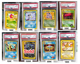 Sono aperto a offerte. 🔥 Vendo collezione di carte Pokémon rare e autenticate da PSA/DNA. Tutte le carte sono originali, sigillate in custodie protettive e autenticate con certificato ufficiale. Perfette per collezionisti e investitori. Carte disponibili con prezzi: Umbreon 2002 (Giapponese, MINT) – 4800€ Dark Jolteon 2001 (Italiano 1st Edition) – 2000€ Pikachu 1996 (Giapponese, Primo Rilascio) – 2800€ Magby (Autografata Mitsuhiro Arita) – 2000€ Hypno 2003 (Italiano, Aquapolis) – 1500€ Magmar 1999 (Fossil, 1st Edition) – 2500€ Trainer The Rocket’s Trap 1998 – 80€ (Venduta) Meganium 2001 (Giapponese) – 180€ Dark Blastoise 2002 – 690€ Nidoking 2002 – 190€ Erika’s Vileplume 1998 – 180€ Misty’s Gyarados 1998 – 150€ Umbreon-Holo 2002 (Split Earth, 1st Edition) – 1500€ (Venduta) Misty’s Tentacruel 1998 – 690€ Dark Raichu 2002 – 180€ Ogni carta è accuratamente conservata in custodia PSA/DNA e alcune sono firmate da Mitsuhiro Arita. Possibilità di acquisto singolo o di pacchetto completo. Spedizione sicura in tutto il territorio nazionale o ritiro a mano. Per info e trattative, contattare via messaggio.