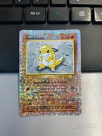 Carta originale Pokémon rara leggendaria Sandshrew 91/110 della serie in inglese. Versione del 2002, molto ricercata dai collezionisti per la rarità della stampa in lingua inglese.