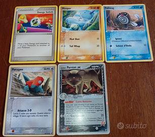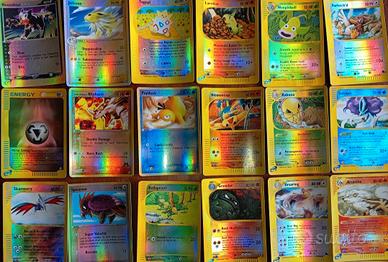 Vendo lotto di oltre 250 carte Pokémon vintage. Ho venduto separatamente le carte di Skyridge e Aquapolis, per il resto quello che vedete c'è, insieme a molto altro che non ho avuto modo di caricare. Chiedere pertanto prima in privato. Ho cercato di suddividere le carte, chiedo venia se ho fatto dei piccoli errori anche se dovrebbe essere giusto. Il lotto dovrebbe essere quindi composto circa dai seguenti numeri: - 28 carte Holo e Holo Reverse (principalmente Holo Reverse) - 14 edizione Jungle - 20 edizioni Fossil - 26 del Set Base - 19 Neo Discovery - 7 Team Rocket - 120 miste tra Ex Tempesta Di Sabbia (credo nessuna Holo), Ex Forze Segrete, Expedition ecc - 29 Magma vs Aqua - 4 Legendary Collection - 9 Neo Genesis - 7 tra Gym Challenge e Gym Heroes - Mewtwo Wizard black star promos 😍 Preferibile sambio a mano in provincia di Como. Possibile spedizione a profili affidabili e unicamente tramite TuttoSubito (scelta tra Poste Italiane o UPS). Non vendo carte singole.