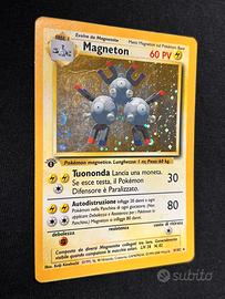 La carta presenta una piegatura sul riquadro olografico. Vendo intero Set Base italiano. Tutte in ottime condizioni ma senza gradazione. Molte prima edizione tra cui Charizard. Ho anche molte carte Dark serie Team Rocket, serie Gym Heroes e serie Gym Challenge.